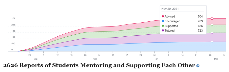 In the first weeks, many students report that they haven't completed a challenge yet. But after ten or more students have completed an EduGuide challenge, this chart of how they are helping others will be added to the rotation of charts in your staff dashboard that you'll see when you log-in.
